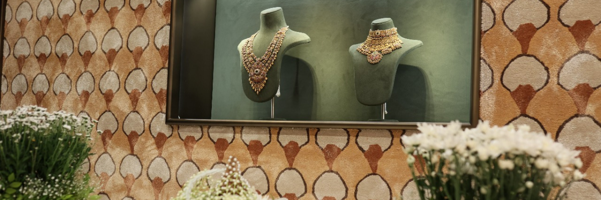 Explore timeless Gold, Diamond, Polki, and Silver pieces displayed in a serene, thoughtfully designed environment.